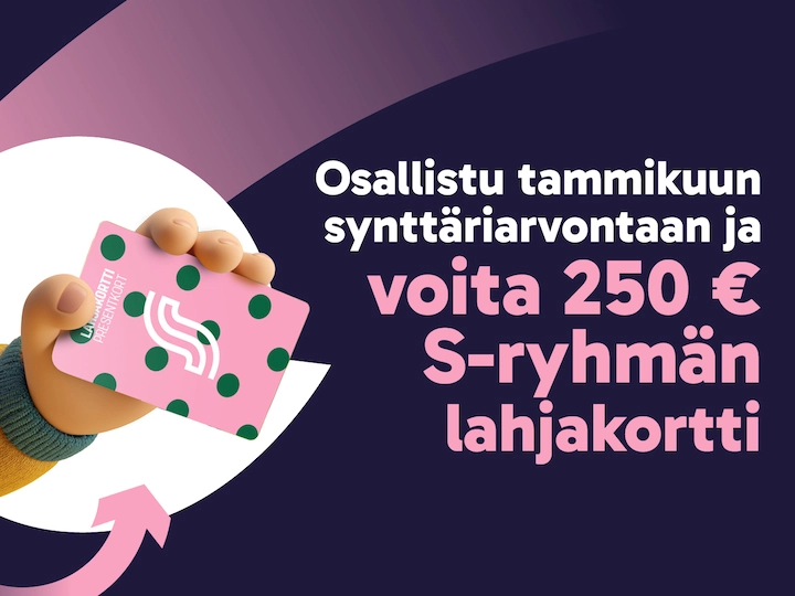 Arvomme 250 euron S-ryhmän lahjakortin kaikkien rekisteröityneiden ja uutiskirjeen tilanneiden kesken.